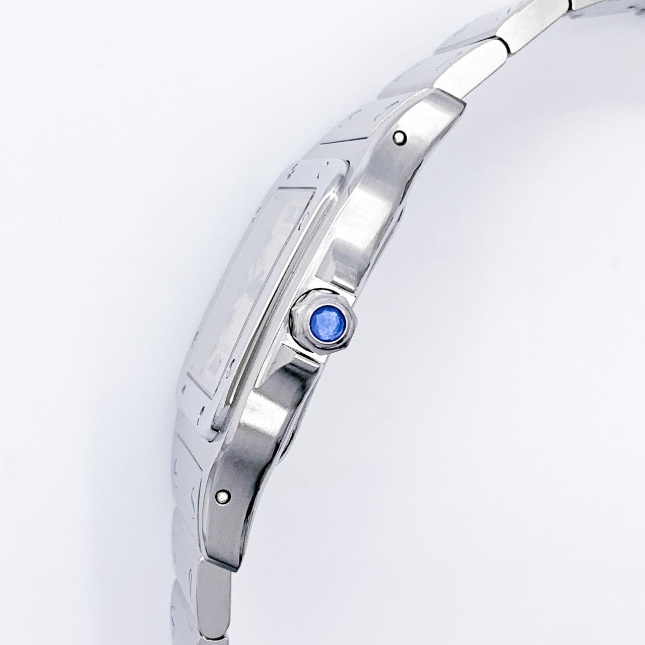 ビスモチーフを配したブレスレットと、なめらかに湾曲するケースライン。直線と曲線が融合したそのフォルムは、力強さと品格を併せ持ちます。