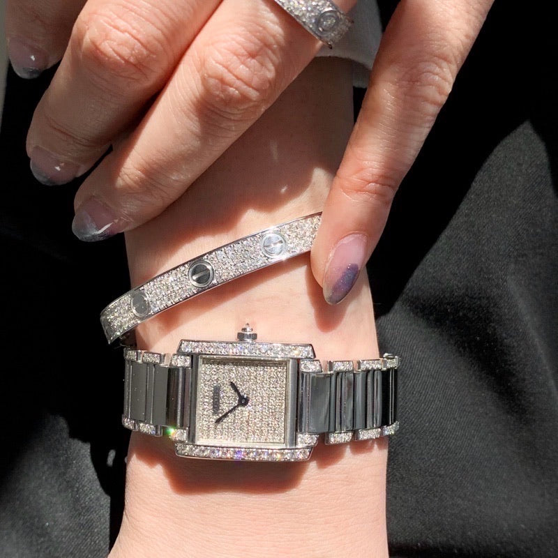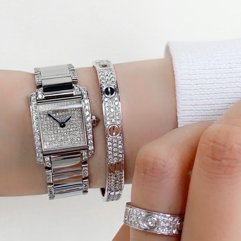 CARTIERシリーズの中でも特に人気が高く、女性にとっては憧れのモデル《フランセーズ》