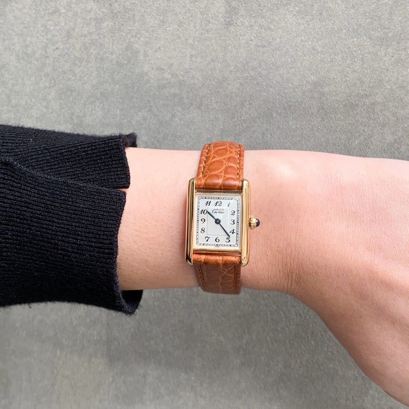 誕生から100年以上の歴史を持ち、不動の人気を誇る《タンク》。 その中でも、ヴィンテージブームにより人気が急上昇している「マスト タンク」は、現在ますます希少価値が高まっている逸品です。 本モデルは、クラシカルでありながらどこかモダンな表情を持つアラビア文字盤を採用。 ローマ数字とはひと味違う個性と温もりを演出し、ヴィンテージらしい深い魅力を感じさせます。 さりげなく“通好み”を感じさせる文字盤は、コーディネートのアクセントとしても秀逸です。