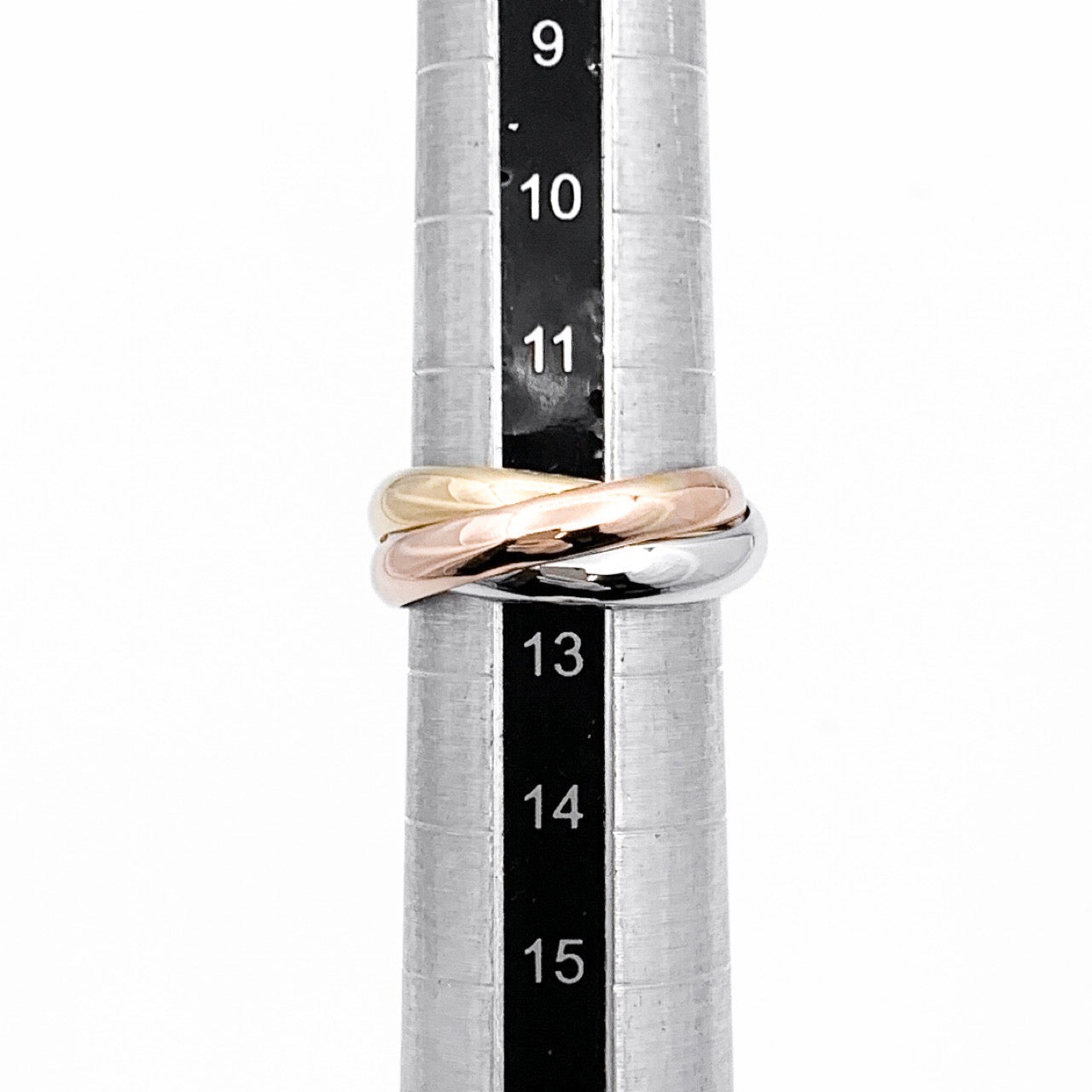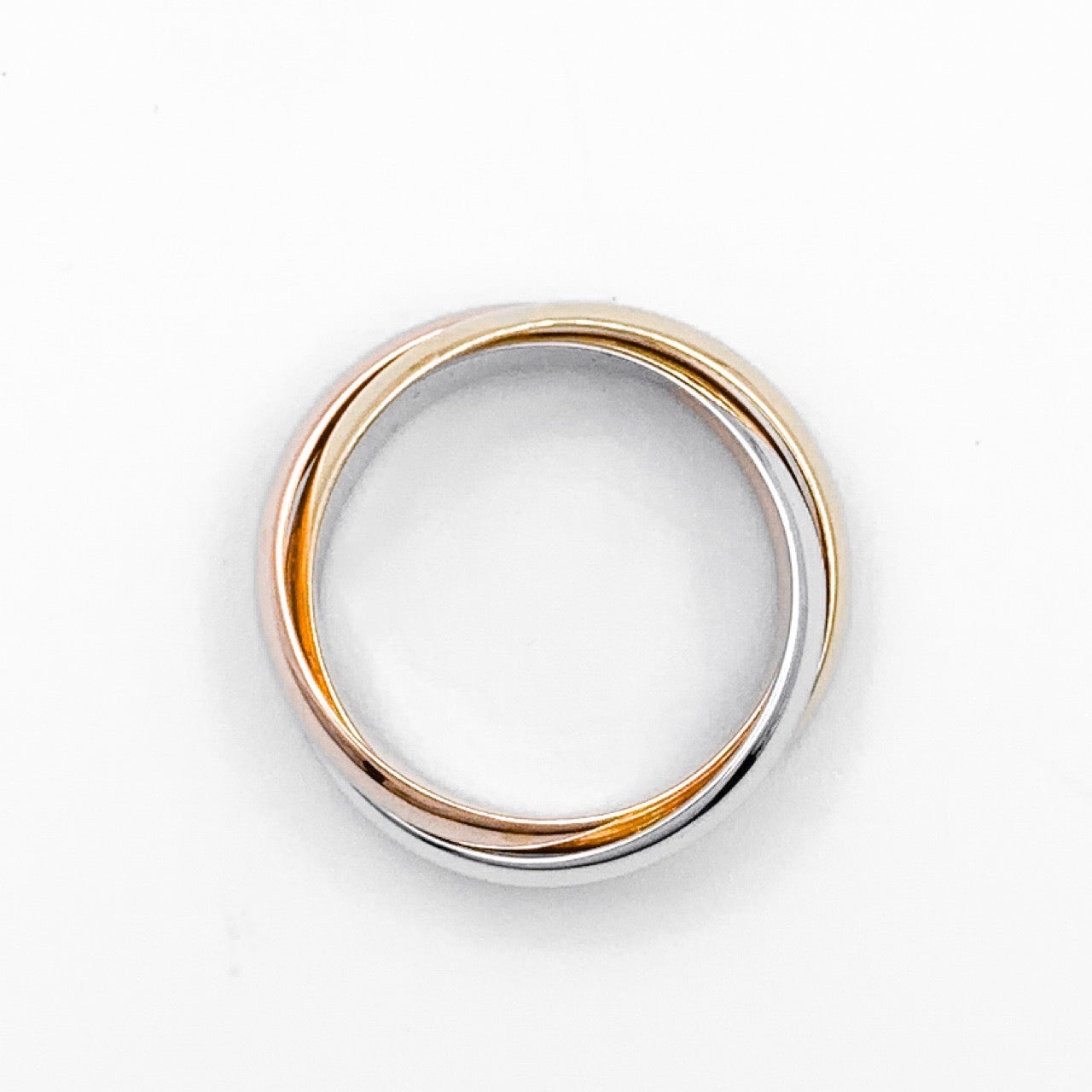 永遠のバランスを纏う、「トリニティリング」 3つのゴールドが柔らかく重なり合うトリニティリングは、カルティエを象徴するタイムレスな名作。 イエロー・ホワイト・ピンク、それぞれの色味が調和しながらも個性を放ち、手元に奥行きのある美しさを添えてくれます。 指を動かすたび、リング同士がふわりと触れ合い、まるで“自分らしさ”が揺らぎなく重なっていくような感覚。 シンプルでありながら、他にはない存在感を生み出すデザインは、年齢やスタイルを問わず馴染むのも魅力です。