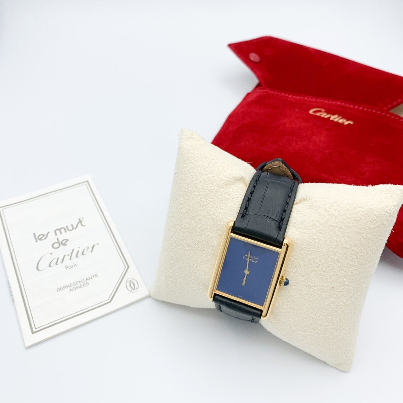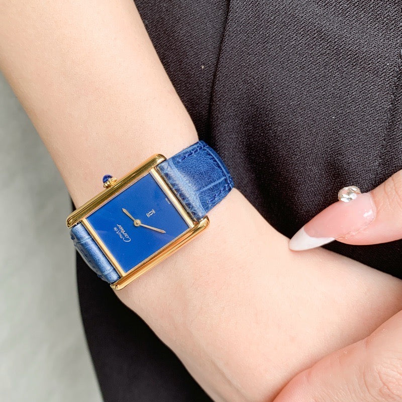卡地亚/Mast Tank LM 手动上链蓝色表盘金表壳腕表