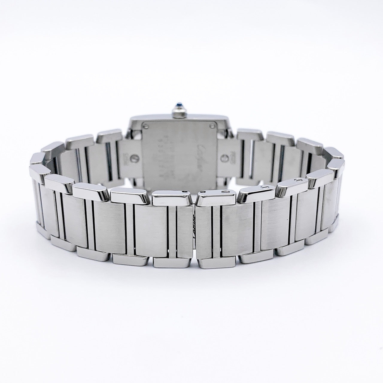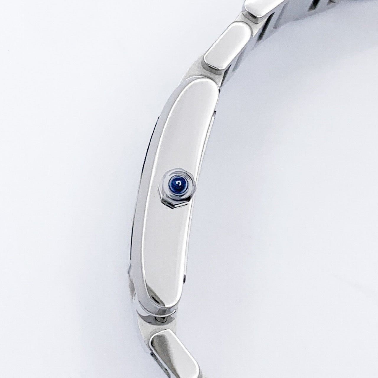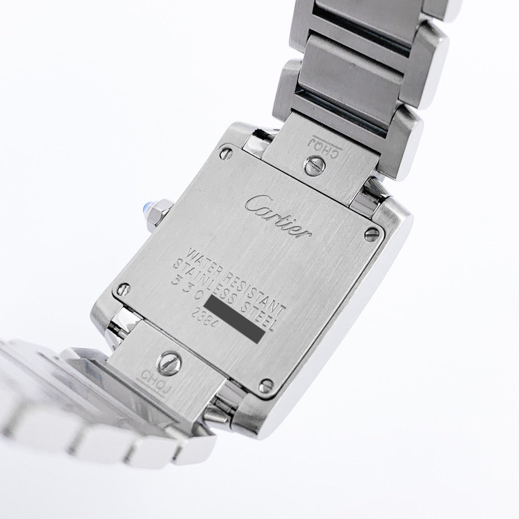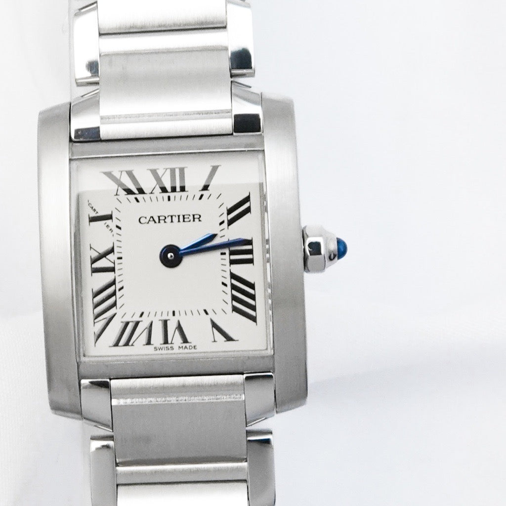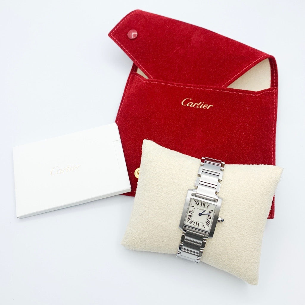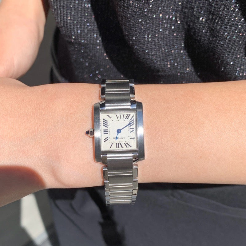 CARTIERシリーズの中でも特に人気が高く、ファーストカルティエとしても定番の《タンクフランセーズ》 モダンなブレスレットの様なデザインは、どんなファッションでも合わせやすく、永く愛せる腕時計。 モデルのミランダ・カー、女優の米倉涼子さんや、田中みな実さんが愛用のモデル。 当店職人、一級時計修理技能士による電池交換、点検、外装仕上済みで安心してご愛用いただけます。