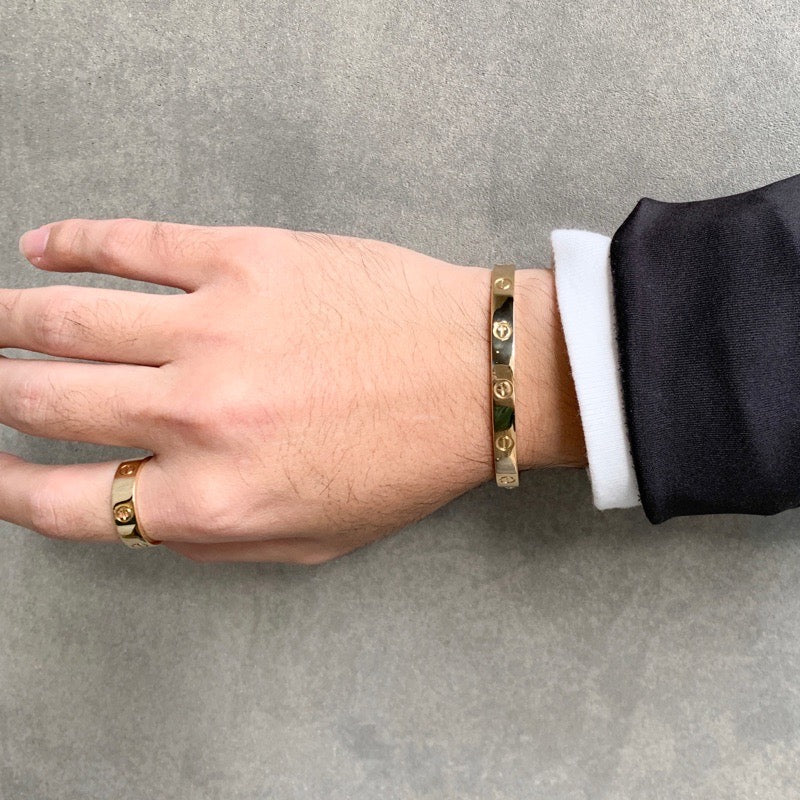 重厚感と洗練を兼ね備えた一本です。 象徴的なビスモチーフは“永遠の愛”を表すカルティエのアイコン。 時代を超えて愛され続けるデザインは、シンプルなのに個性があり、選ぶ人の美意識をそっと引き立ててくれます。 オンにもオフにも自然に馴染み、ふと視線を落とすたびに気持ちが整うような、特別な存在感。 自分へのご褒美にも、大切な人とのペアリングにもふさわしい、永く愛せるジュエリーです。 カルティエ保証書付き&外装仕上げ済みで安心してご愛用いただけます。